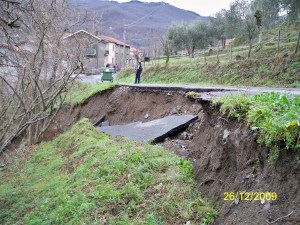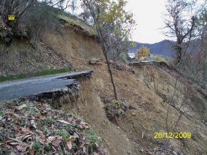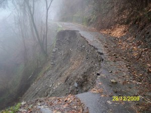 Nelle foto che seguono, notiamo l’assoluta mancanza della viabilità, “spazzata” via dalle varie frane. Questi sono grossi problemi, perchè glì interventi di ripristino sono costosi e non esistono, in queste situazioni, vie di mezzo; non si può, cioè, progettare un opera di ripristino che non sia quella definitiva. Tutto questo vuol dire che l’intervento che si va a realizzare deve essere definitivo e quindi progettato con tutte le attenzioni e precauzioni, che a volte non sono riservate agli interventi in somma urgenza. Insomma, in poche parole, la progettazione deve essere realizzata in tutte le sue componenti, ovvero la parte geologica, quella geotecnica e la strutturale. Nozioni scontate? Spero di sì.