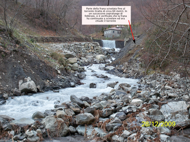 Ecco la parte bassa della frana più grossa, che ha raggiunto il torrente.