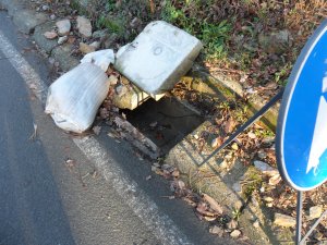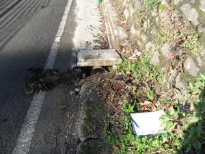 Opera sufficiente o non sufficiente per la raccolta delle acque della strada? Nel caso specifico risulta non adeguata, anche perchè è completamente chiusa e riceve le acque da canalizzazioni provenienti da monte; ma non è questo il problema. L’intervento umano va a modificare tale situazione, già particolare, inserendo una tubazione del diametro di 25 centimentri dentro la canaletta, così come si può osservare nella foto seguente.