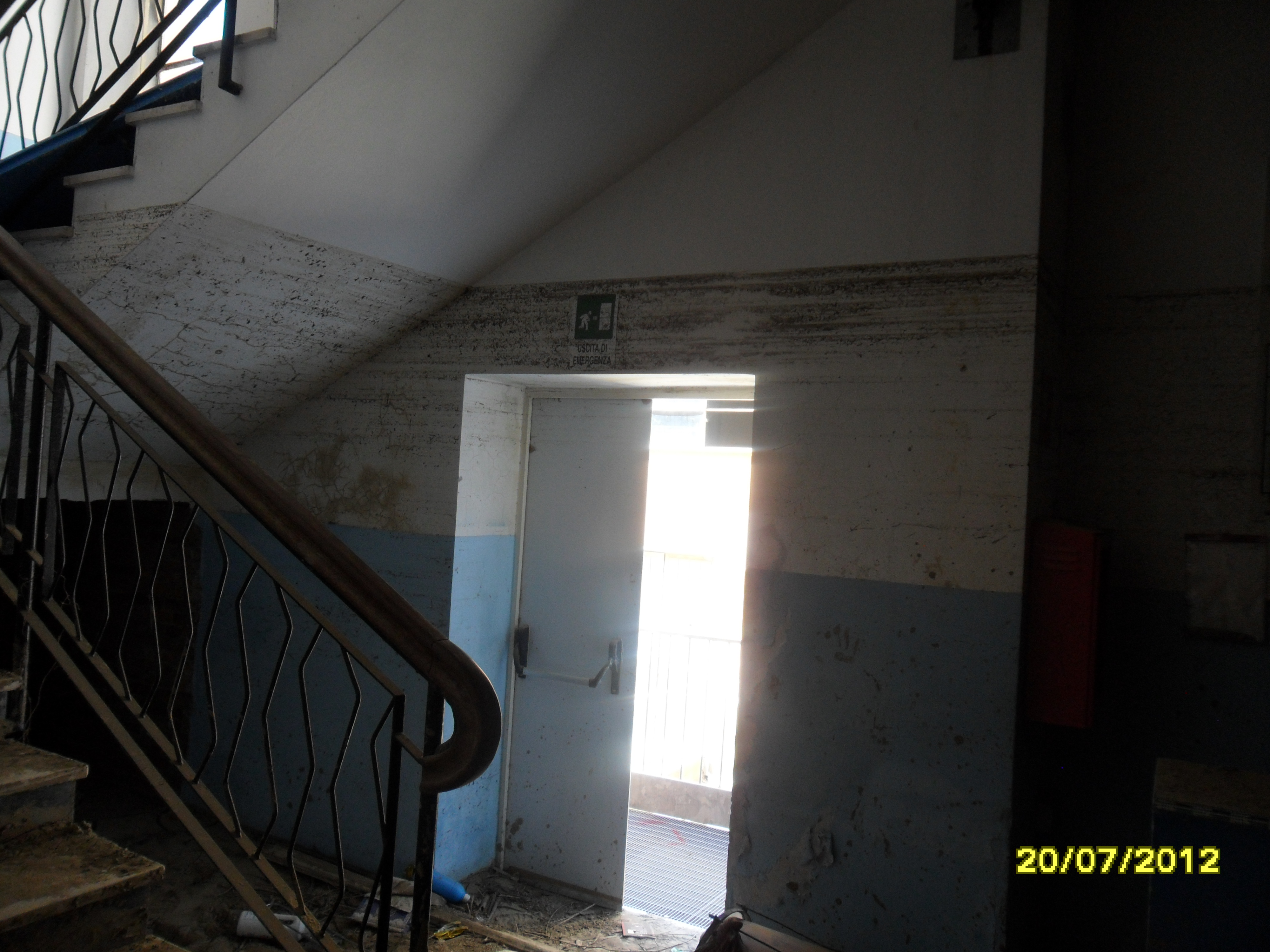 Per farsi un’idea dell’altezza raggiunta all’esterno; la precedente uscita di sicurezza è quella posta all’estrema sinistra della foto che segue. Nel complessivo l’altezza totale delle acque dal piano del piazzale del cortile è risultata di 4,5 metri.