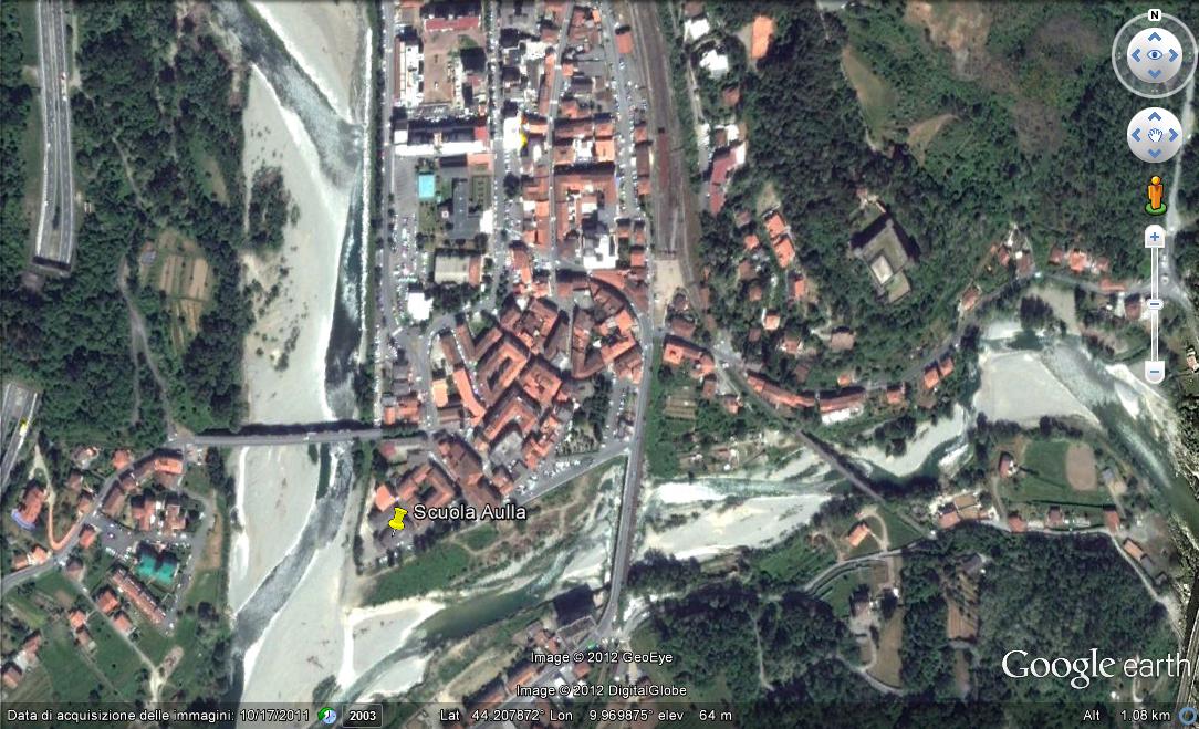 Siamo ad Aulla in Lunigiana e quello che voglio mostrare è la scuola media edificata intorno agli anni ’60, nell’area della confluenza di due fiumi: il Magra e il torrente Aulella.