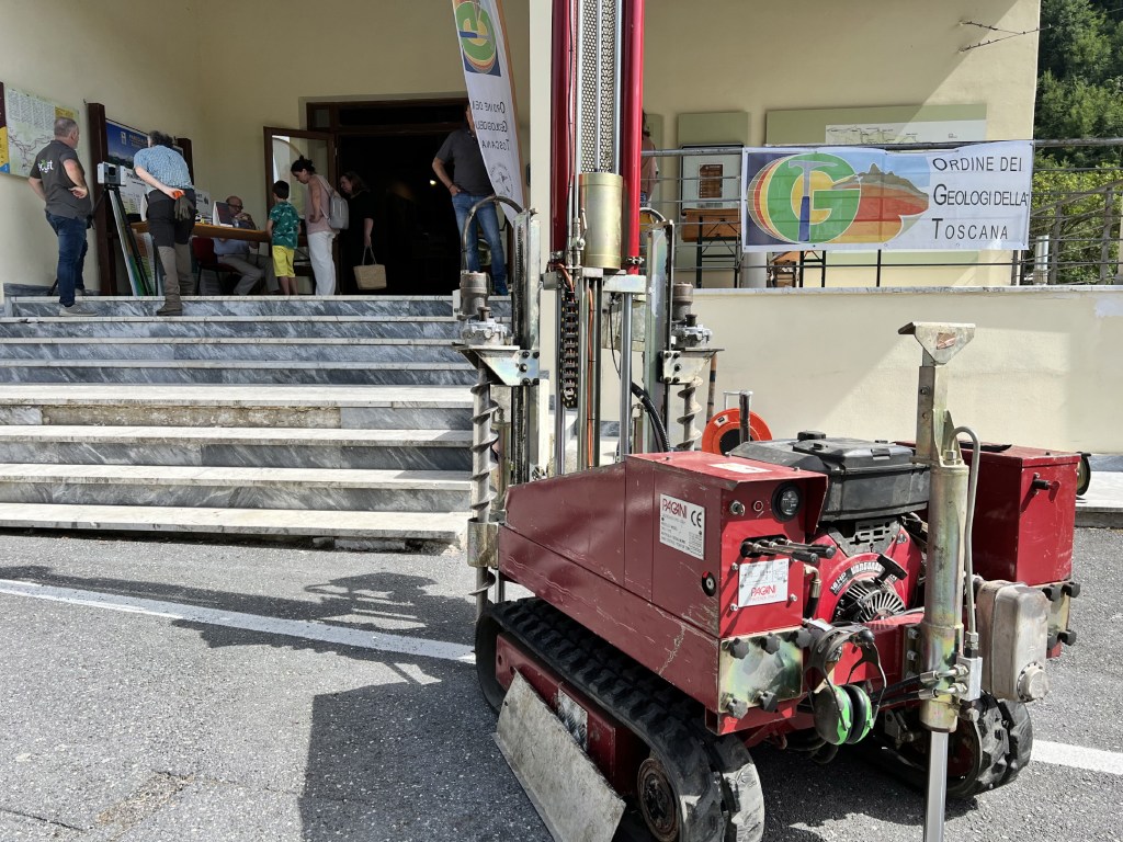 Il Geo corner ha raccolto alcuni geologi liberi professionisti e non solo, che hanno dedicato un pomeriggio del loro tempo a spiegare l’attività lavorativa specifica del geologo, accompagnati da vario materiale, come un Penetrometro statico dinamico della ditta Pagani, un drone, attrezzature per indagini sismiche tra cui un tromino, attrezzature per indagini su roccia (pettine di Burton, sclerometro, bussola da geologo), un teodolite elettronico, oltre a pubblicazioni e cartografie varie. A questi si sono aggiunti una collezione di fossili e minerali privata, un fuoristrada della Protezione Civile dell’Unione di Comuni della Lunigiana, rocce e ulteriori minerali da classificare. Ecco le immagini degli intervenuti