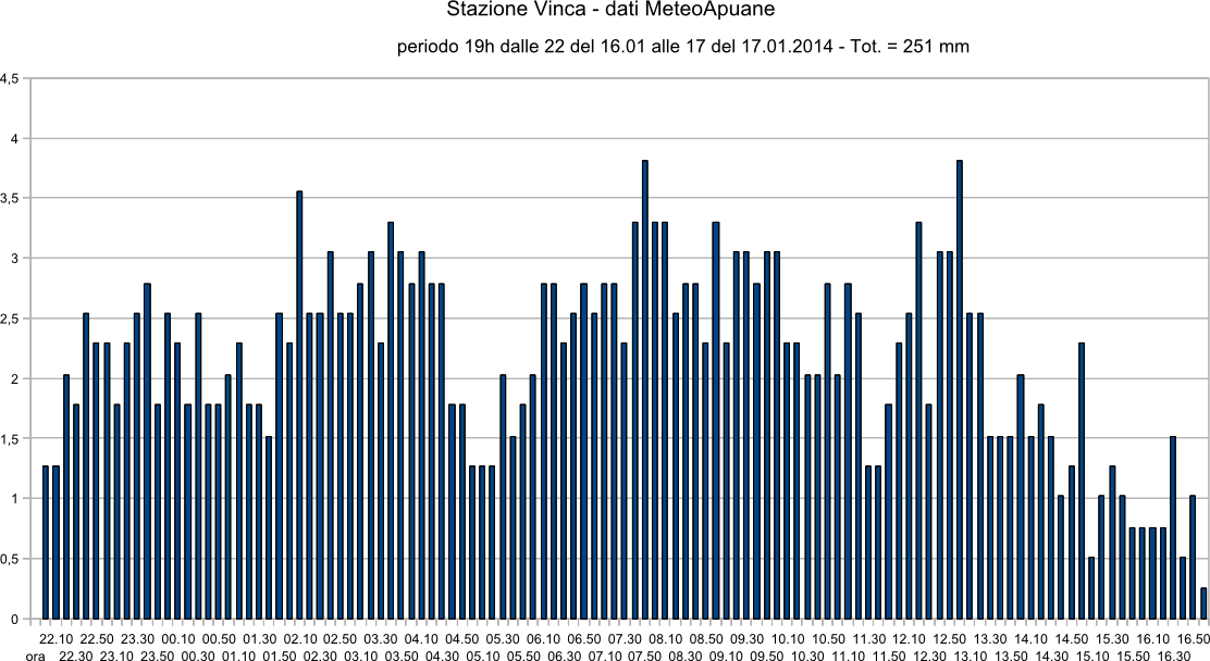 Stazione di Vinca, gennaio 2014. Dati Meteoapuane